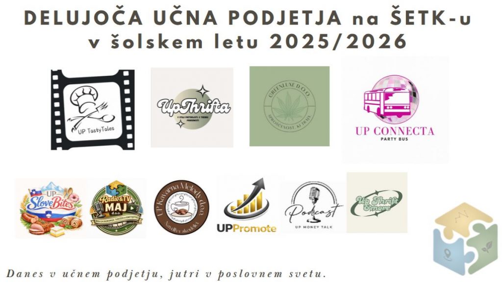 Delo v učnih podjetjih dijakom omogoča razvoj timske dinamike, trženjskih znanj, finančnega načrtovanja, komuniciranja s strankami in javnega nastopanja. S tem šola dijake učinkovito pripravlja na nadaljnjo izobraževalno in poklicno pot ter krepi povezavo med šolo, gospodarstvom in lokalnim okoljem.